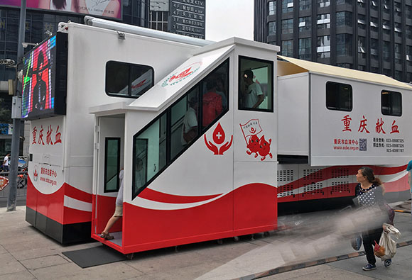 移動獻血屋有什么特點呢?它是有輪子的,借助拖掛車牽引過來即可。商店應急電源設備等,以保證機艙內的空調,血液存儲設備的正常運行。還有就是,在獻血屋的前面,有一個應急窗口,遇到一些問題需要取血或緊急情況時候,可以更加迅速地在這里處取出。這種更加寬敞的移動獻血屋,能給獻血者提供更好的獻血服務。獻血屋有一個相對獨立的分區(qū),它也配備了更好的設施,無線網絡,將提供一個更舒適的環(huán)境和更好的獻血者獻血經歷。