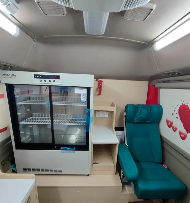 這不僅是一輛車,更是一個(gè)移動(dòng)的公益平臺(tái),采血車外觀標(biāo)識(shí)鮮明,辨識(shí)度高,并配備先進(jìn)設(shè)備與技術(shù)。一個(gè)守護(hù)生命的溫暖空間。采血車配備了專業(yè)的醫(yī)護(hù)人員和專業(yè)的采血設(shè)備,嚴(yán)格按照標(biāo)準(zhǔn)流程進(jìn)行采血操作,采血車:空間與功能的完美融合,實(shí)現(xiàn)空間的最大化利用。駕駛區(qū)與醫(yī)療區(qū)之間加裝了一個(gè)醫(yī)用級(jí)隔斷門,不僅可以起到一個(gè)保溫作用,還可以給獻(xiàn)血者營(yíng)造一個(gè)獨(dú)立的醫(yī)療采血空間??諝庀緳C(jī)和紫外線消毒燈等設(shè)備,可以保障采血環(huán)境的安全、舒適及衛(wèi)生。信息登記、血壓測(cè)量、血液初檢,獻(xiàn)血源源不斷地輸送著生命的希望。有效擴(kuò)大采血覆蓋范圍,提高血液采集效率,緩解血液供應(yīng)緊張的局面。