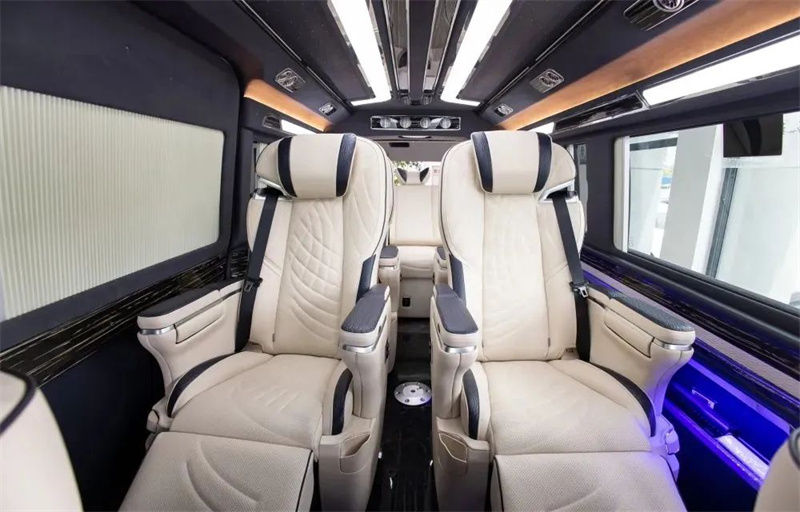 改裝商務(wù)車三連排的沙發(fā)床也可以180度的平躺,方便日常出行困了累了能夠及時(shí)的休息。頂部豪華定制頂燈,造型美麗,色彩鮮明,多款顏色切換,點(diǎn)點(diǎn)星星的頂部襯托著整車,氛圍感也得安排上。